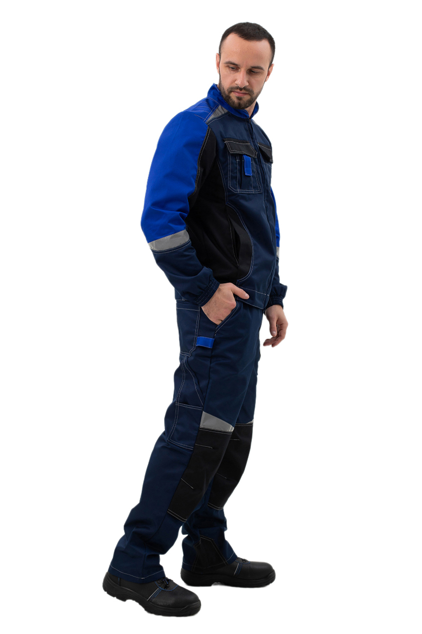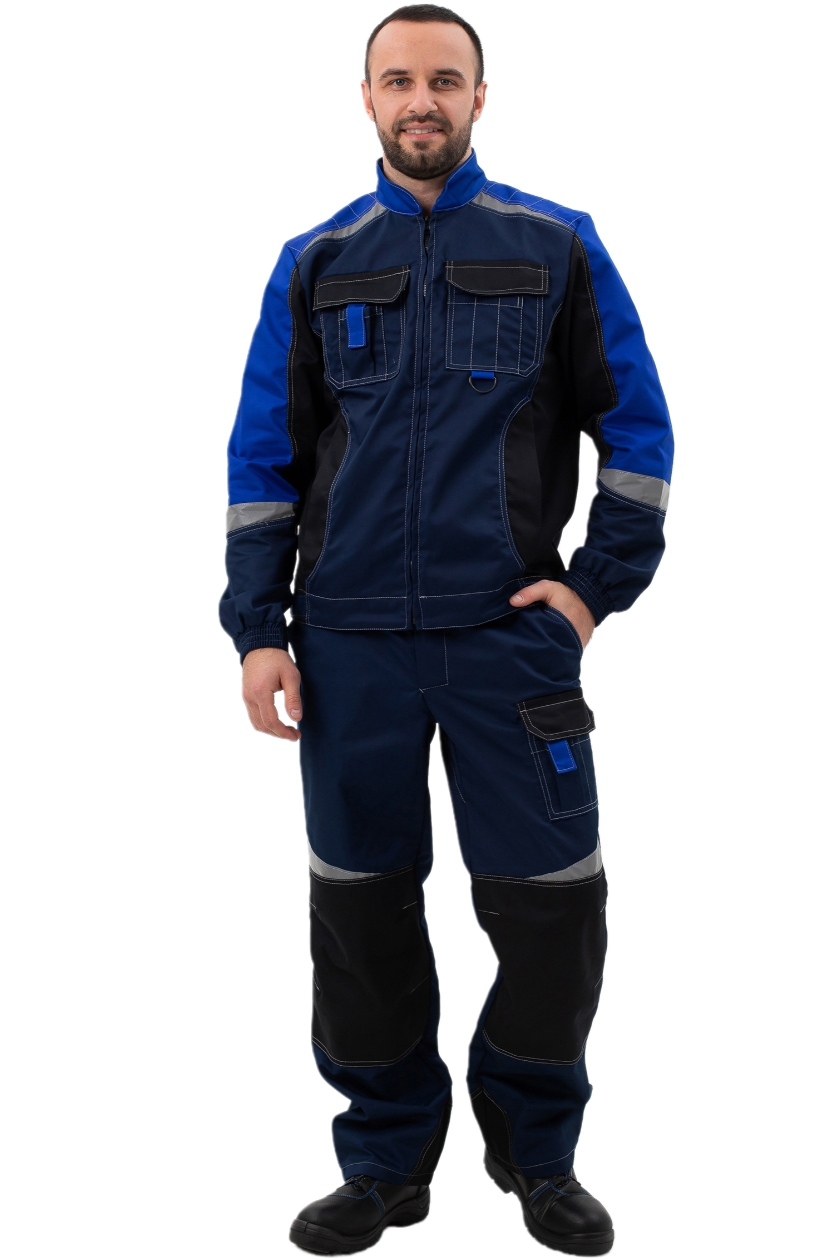 ➠ Брюки: на притачном поясе, гульфик с застежкой на «молнию», боковые карманы с отрезным бочком. Колени усилены накладками, заложены по 2 вытачки. Один карман над левым наколенником. По шву наколенников косые, фигурные вставки СОП.